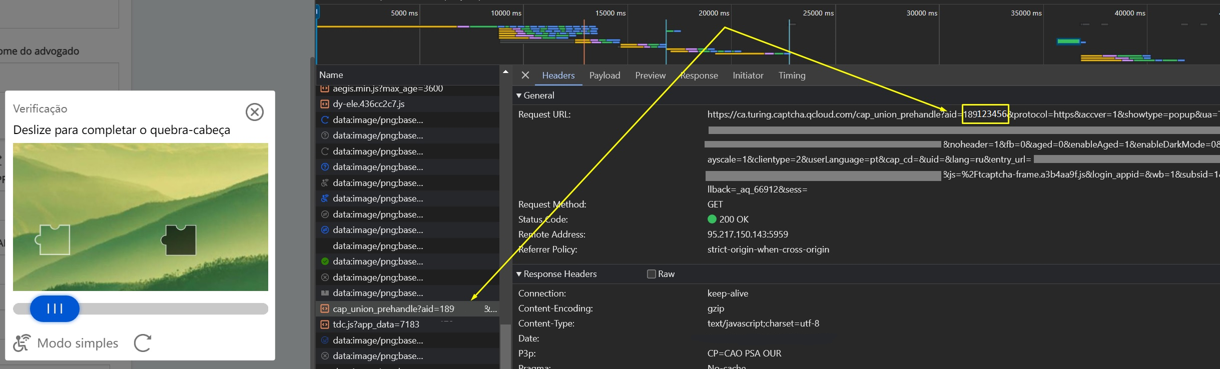 captchaUrl (dentro da metadata)<string>optionalLink para o script do captcha. Normalmente termina com TCaptcha.js ou TCaptcha-global.js. Pode ser encontrado na lista de requisições (veja o exemplo abaixo).