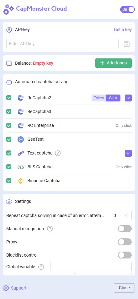 A extensão CapMonster Cloud oferece uma maneira prática de visualizar os parâmetros de vários tipos de captcha necessários para o envio correto da tarefa ao servidor e sua resolução com sucesso. Os dados exibidos ajudam a garantir a precisão dos parâmetros enviados e podem ser usados como exemplo na criação de suas requisições de API.