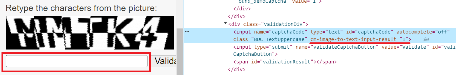 Ao mesmo tempo, captchas e campos de entrada correspondentes devem ter o mesmo id.