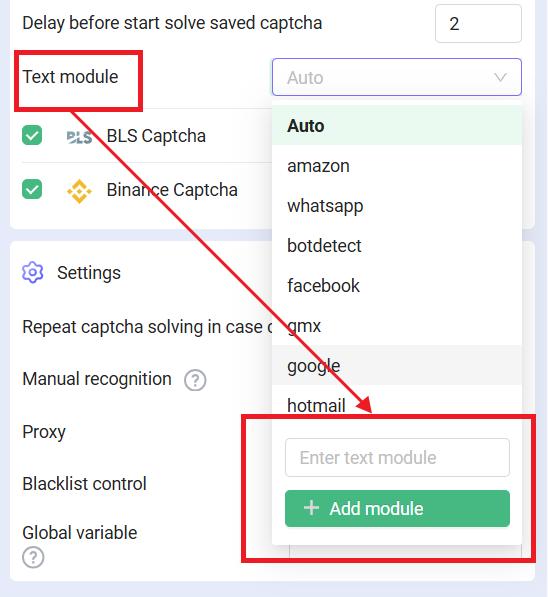 Assim, o CAPTCHA será resolvido corretamente usando o módulo selecionado ou personalizado.