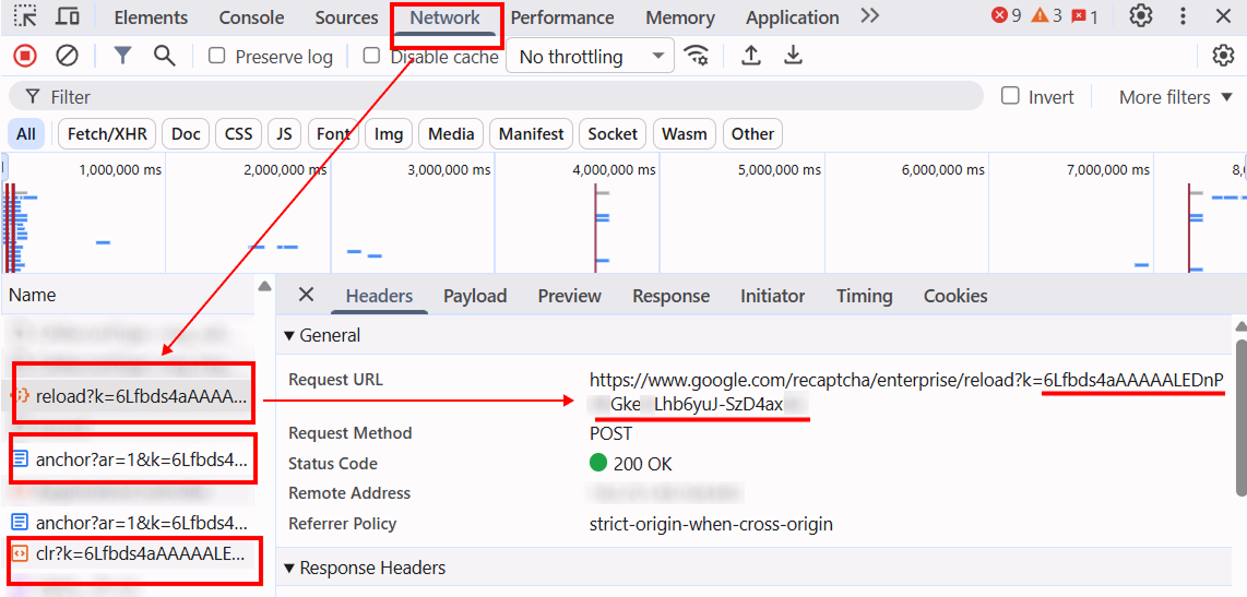 Найдите скрипты reCAPTCHA: