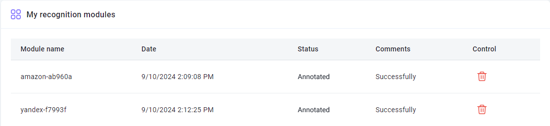 您将在此列看到“删除”按钮。但这仅适用于状态为Validated的模块。