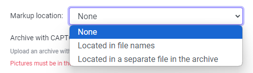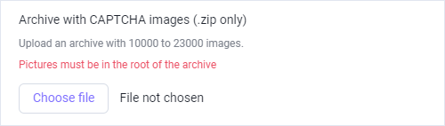 要回答这个问题,请在模块训练页面的表单中标记您的验证码包含的符号类型。完成后,在上传存档按钮上方会显示一个提示,告诉您需要上传多少验证码:支持的图片格式