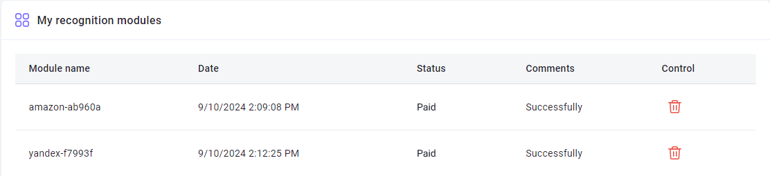 如果您尚未支付模块费用且模块状态为Validated,您可以删除它。更多信息请参阅Validated状态的描述。