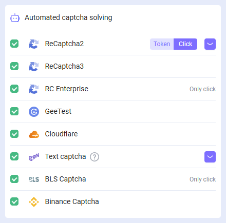 | reCAPTCHA V2 Enterprise | class,imageUrls,Task(在 metadata 中),Grid(在 metadata 中),recognizingThreshold,userAgent,type |