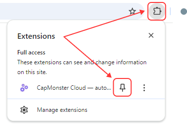 默认情况下,安装的扩展是隐藏的。要固定它,您需要点击“固定”按钮: