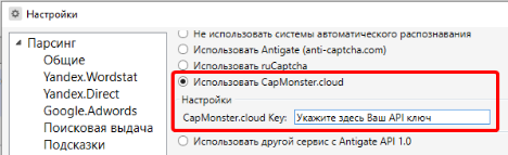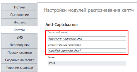 2. 然后在您的程序中的相应字段中指定您的 CapMonster Cloud 个人 API 密钥,用于发送验证码。